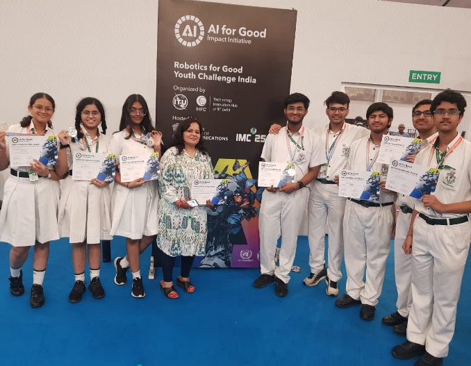 In the comic-strip creation event, students illustrated the touching story “Le Robot veut être humain” (“The Robot Wants to Be Human”). Their artwork and storytelling skills reflected creativity, humour, and empathy, securing 2nd Position.